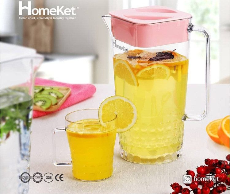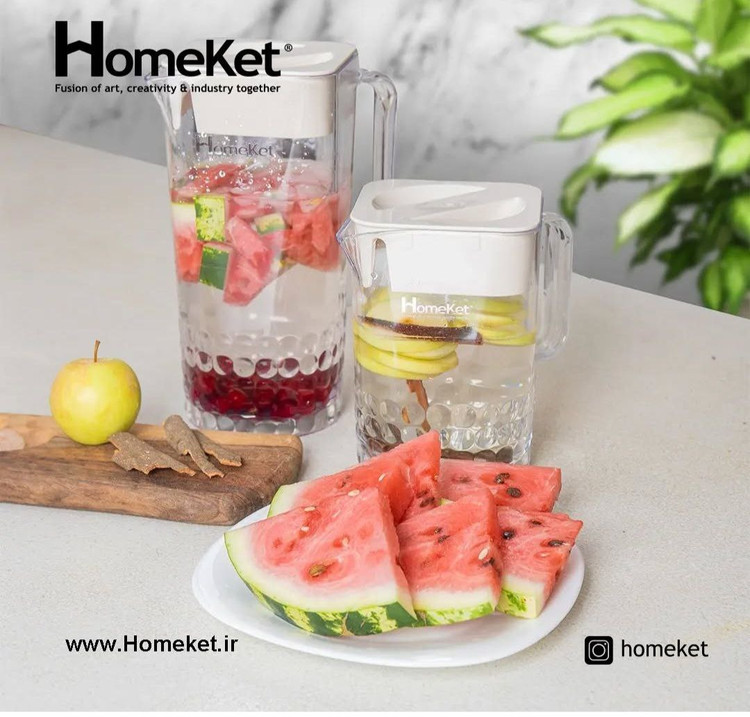 پارچ آب شفاف هوم کت در دو سایر کوتاه و بلند به بازار عرضه میگردد این پارچ دارای طرح مایا هست که یکی از پرطرفدار ترین طرح هاست بدنه این پارچ در رنگ شفاف تولید میگردد . اما درب این محصول دارای رنگ های جذاب و پرطرفدار صورتی و طوسی و وانیلی و سفید میباشد و جلوه زیبایی به خانه و آشپزخانه شما میدهد.